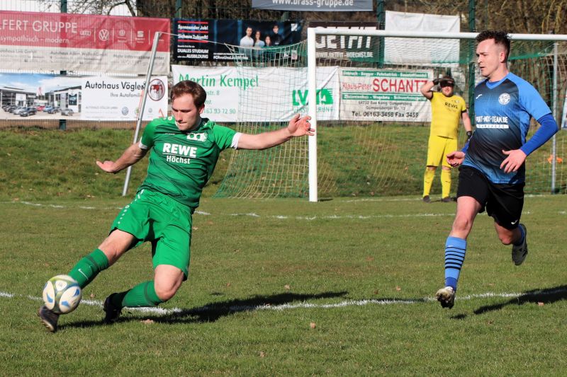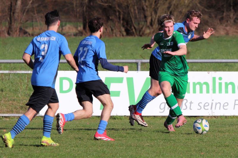 Fast wäre der Plan der Mümling-Grumbacher aufgegangen: kompakt stehen, wenig zulassen und kompromisslos ins Konterspiel umschalten. Zumindest in der ersten Hälfte lieferten die Gastgeber dem noch ungeschlagenen Spitzenreiter einen ebenbürtigen Kampf. Grumbachs Torhüter Matthias Zatocil hätte den FV sogar in Führung bringen können, doch Sandbachs Keeper Timur Kondu hielt den Elfmeter. Auch die Gäste hatten einen Hochkaräter, doch der Ball klatschte nur gegen den Querbalken. Unmittelbar nach Wiederbeginn gelang es Eduard Marian Mocanu (47.), die Gäste in Front zu bringen. „Auch in der zweiten Hälfte blieb das Spiel ausgeglichen und hätte eigentlich keinen Sieger verdient“, sagte Marcel Winkler (FV).