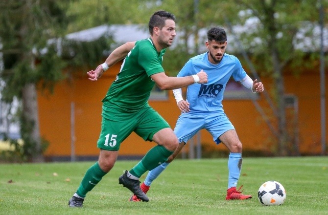 Fehlschlag: der FV Mümling-Grumbach (links Luis Speckhardt) verliert in Langstadt (rechts Önk Inan) mit 0:2. Foro: Joaquim Ferreira