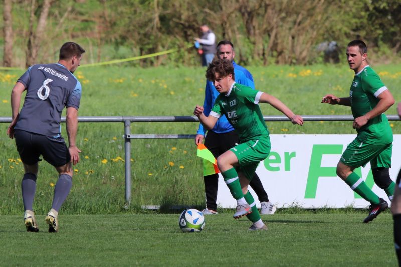 „Wir haben schnell durch Lukas Gebhardt (6.) geführt, der auch die Chance zum 2:0 auf dem Fuß hatte, diese aber leider vergab“, bedauerte Marcel Winkler (FV). Ein Konter von Nils Schmidt (48.) führte zum 1:1. Mümling-Grumbach war feldüberlegen, geriet aber durch Janis Fink (84.) in Rückstand, ehe Lukas Diehl (78.) per Fallrückzieher doch noch den Ausgleich anbrachte. Rothenberg überzeugte mit einem erneut kampfstarken Auftritt und hatte den Auswärtssieg schon dicht vor den Augen.